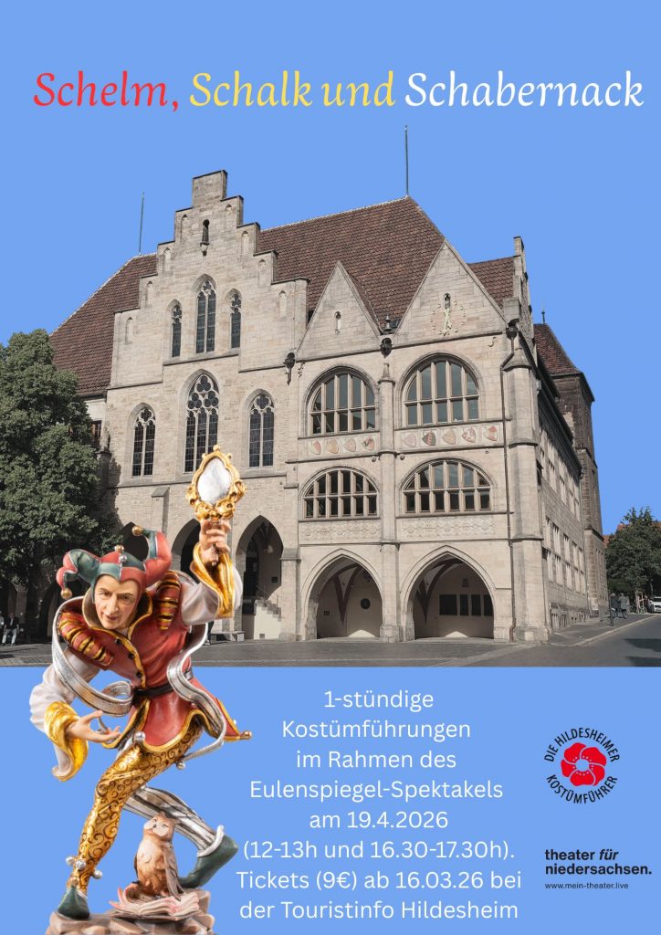 Folgen Sie uns auf eine Schelmenführung ins mittelalterliche Hildesheim auf den Spuren des legendären Till Eulenspiegel. Welche Streiche spielte dieser durchtriebene Narr den Hildesheimer Bürgern? Wie haben er und seinesgleichen den braven Bürgern den Spiegel vorgehalten, aber auch die Sorgen des Alltags für eine kurze Weile vergessen lassen?